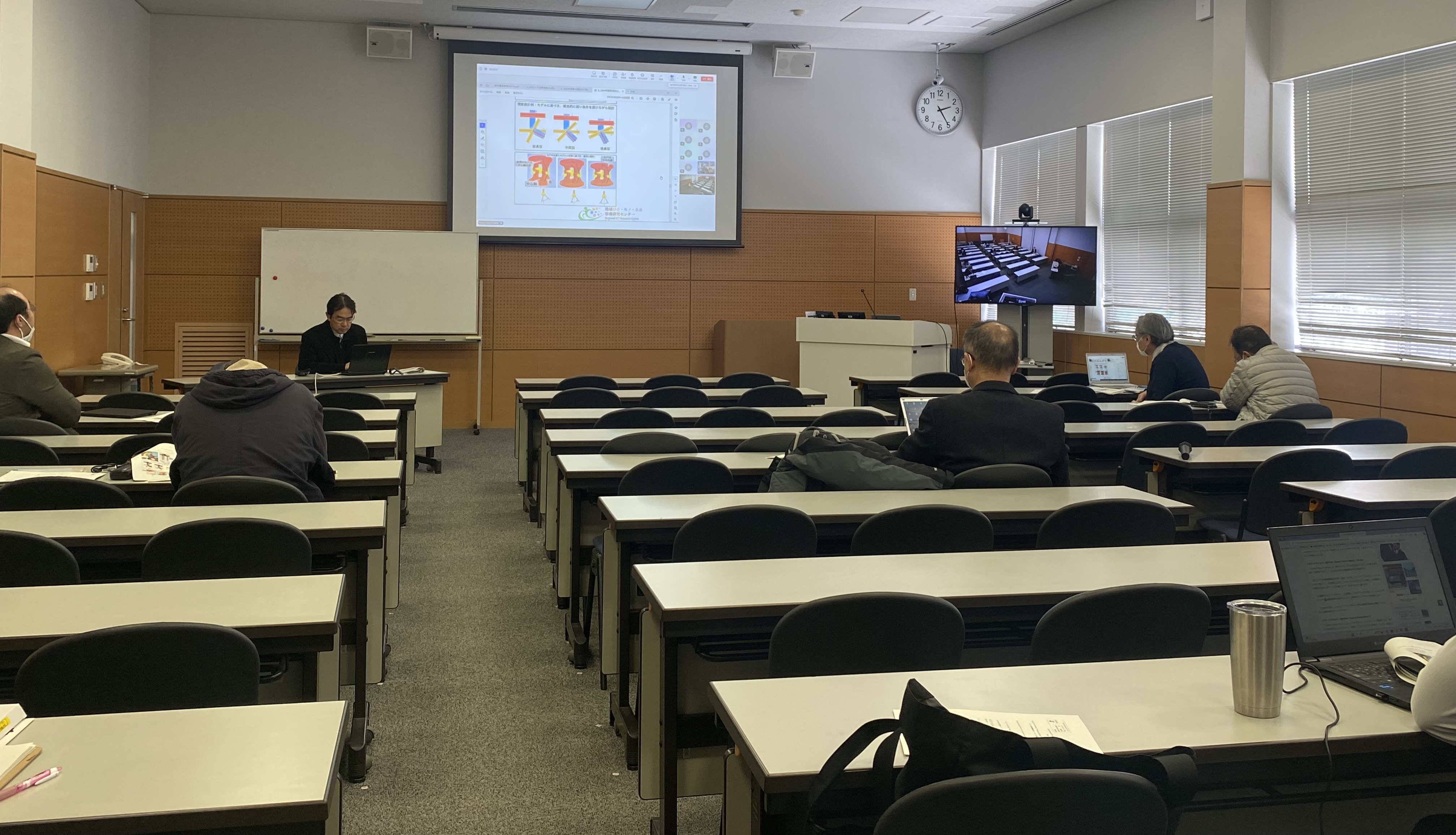 2024年度第3回情報交換会を対面及びオンラインにて開催いたしました。 1月10日(水)13時30分より2024年度第3回センター情報交換会を対面及びオンラインにて開催いたしました。センターメンバーが今季の研究活動報告を発表し、17名の参加者による活発な意見交換が行われました。 ▲情報交換会の様子(対面11名、オンライン6名、計17名が参加)