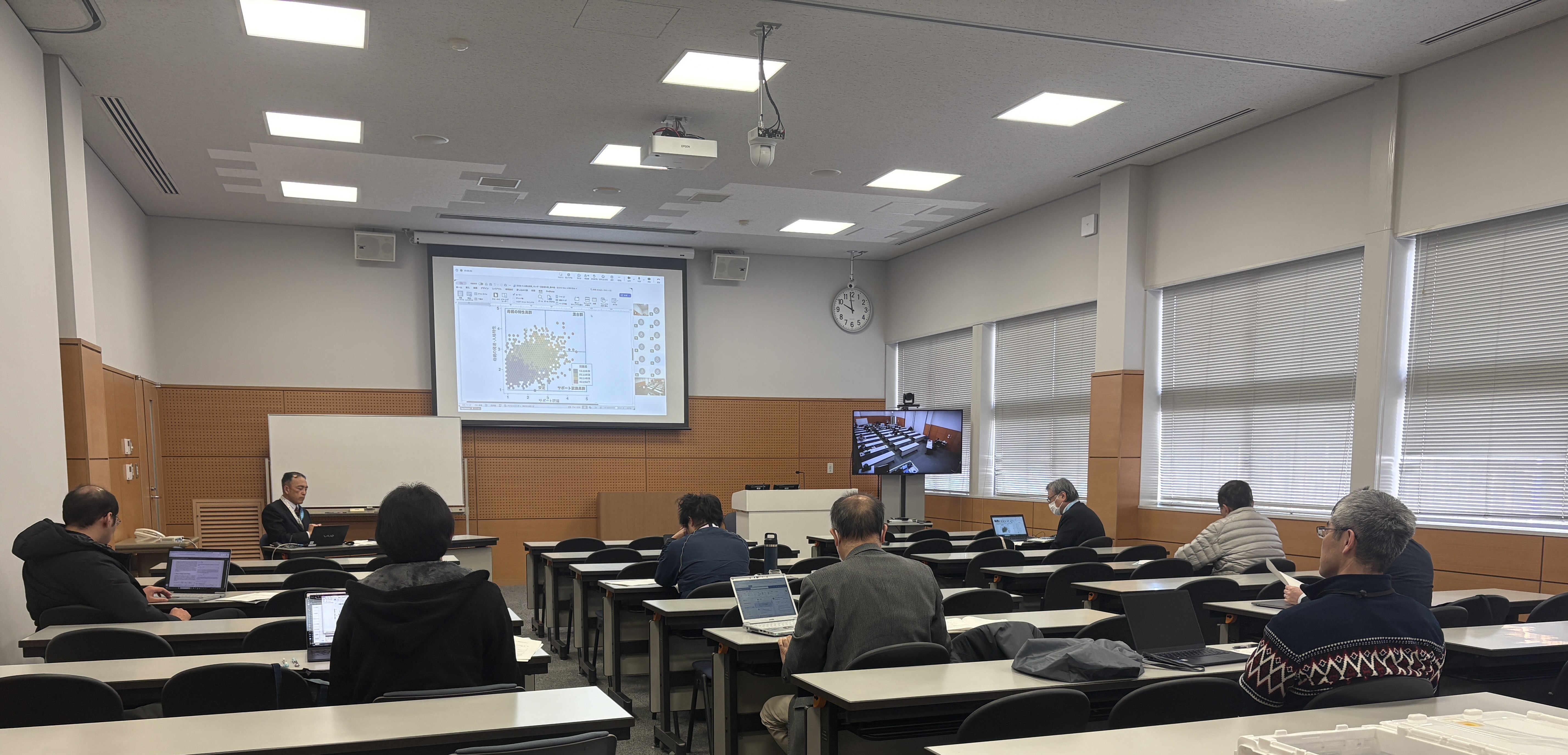 2025年度第3回情報交換会を対面及びオンラインにて開催いたしました。 1月7日(水)9時30分より2025年度第3回センター情報交換会を対面及びオンラインにて開催いたしました。新メンバー2名を加えたセンターメンバーが今季の研究活動報告を発表し、20名の参加者による活発な意見交換が行われました。 ▲情報交換会の様子(対面15名、オンライン5名、計20名が参加)