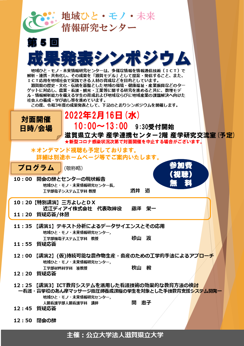 地域ひと・モノ・未来情報研究センター第5回成果発表シンポジウム
