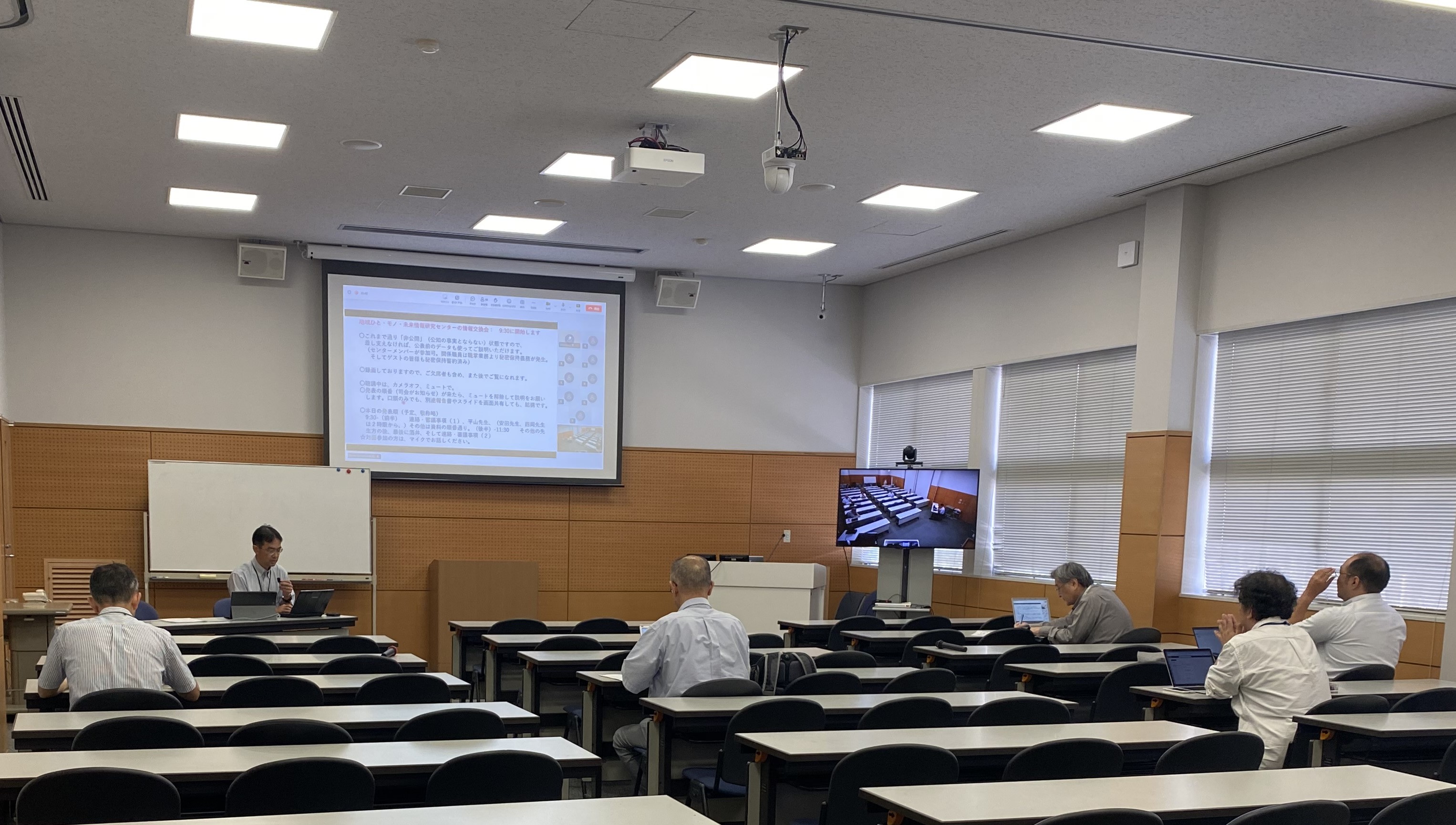 2024年度第2回情報交換会を対面及びオンラインにて開催いたしました。 10月2日(水)9時30分より2024年度第2回センター情報交換会を対面及びオンラインにて開催いたしました。センターメンバーが今季の研究活動報告を発表し、18名の参加者による活発な意見交換が行われました。 ▲情報交換会の様子(対面11名、オンライン7名、計18名が参加)